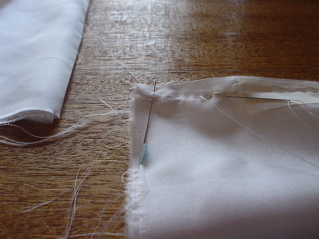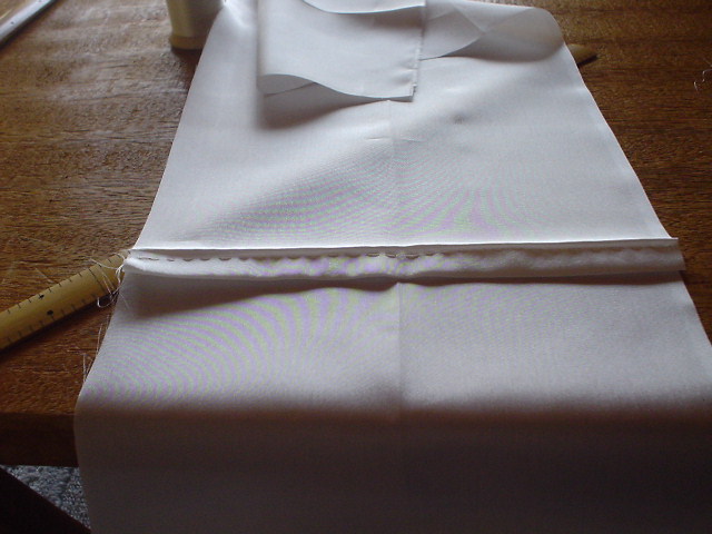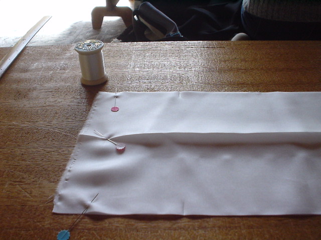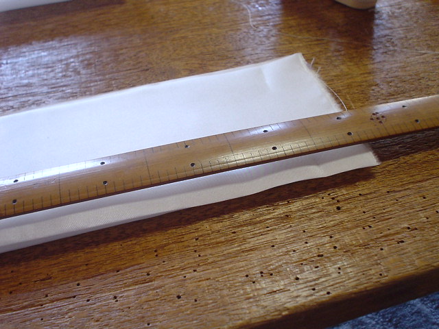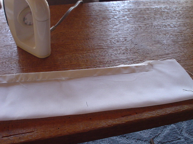輪から2分五厘のところを縫い、1分のきせをかけ、アイロンをかける。