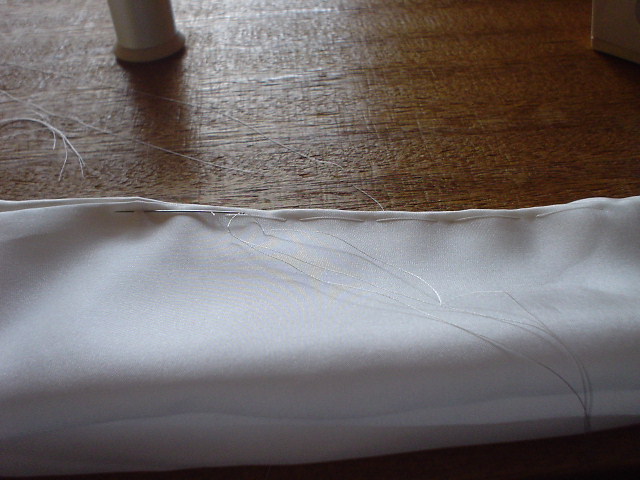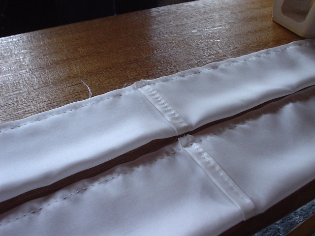 袖口の布に当て布をいれて縫い合わせたところ。