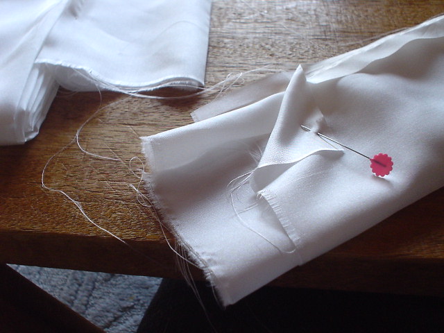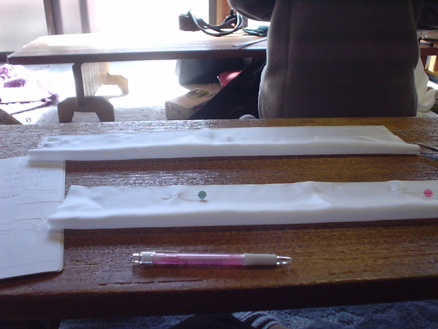 袖口7寸×2で切断、縦半分に軽く折る。