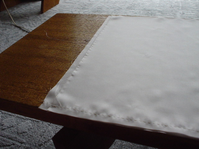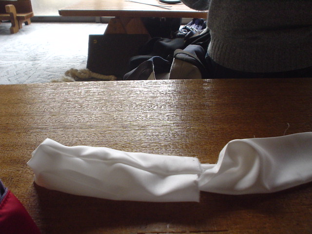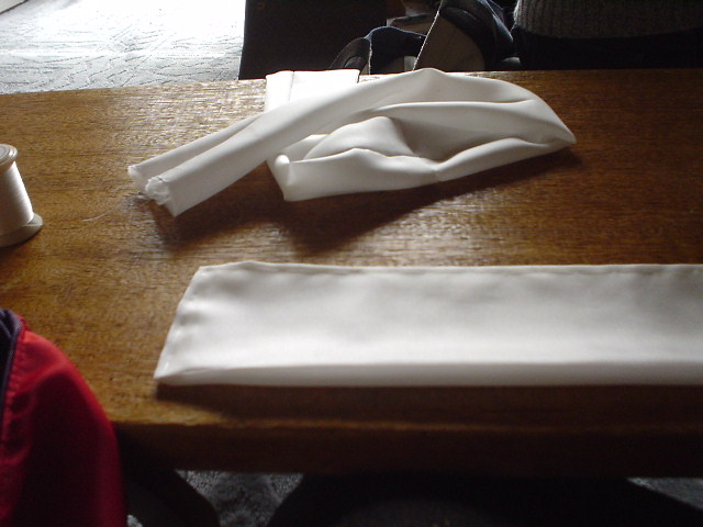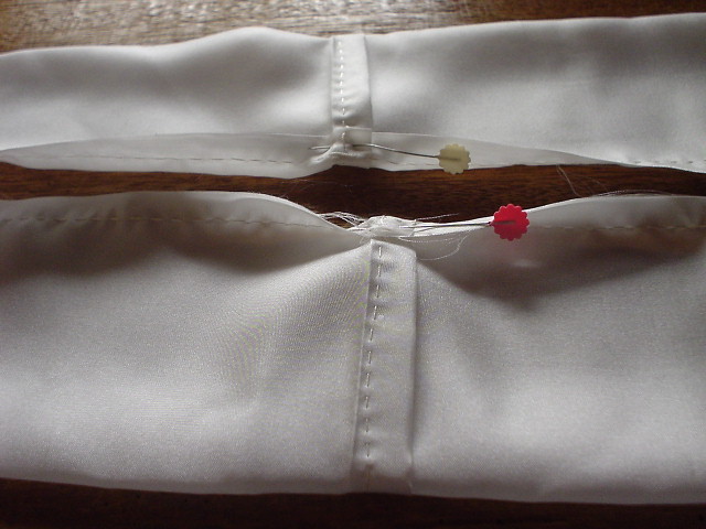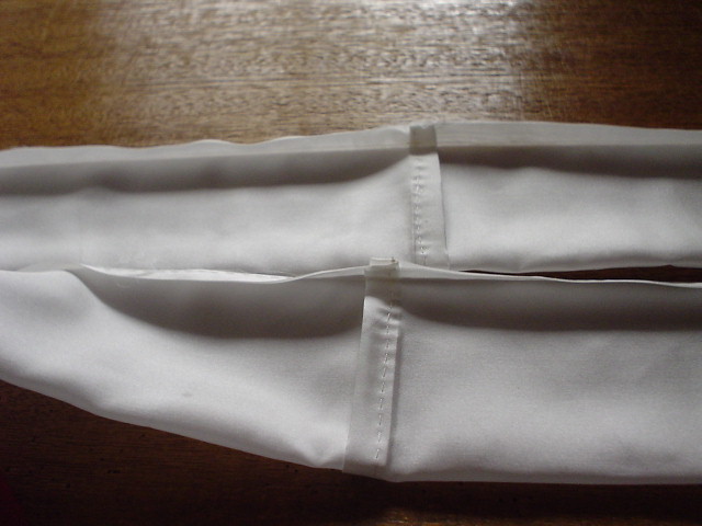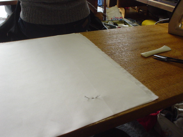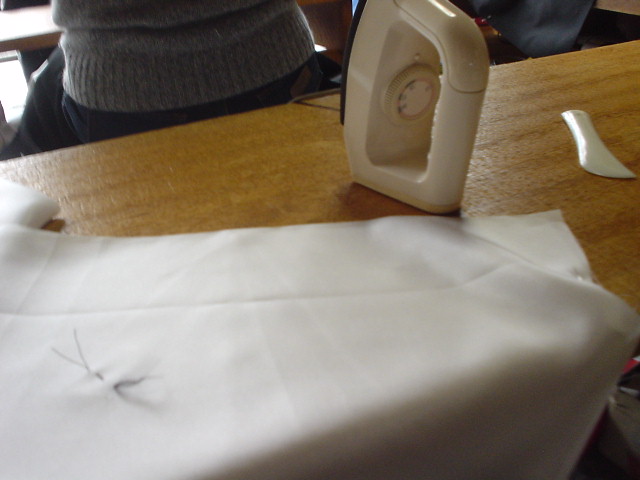 縫い上がったら、左右をつけるため、違う方向にきせをかけ、アイロンをかける。
