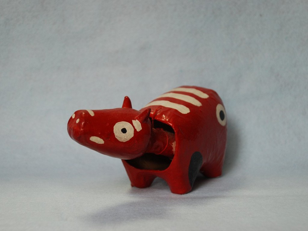 嫌味たらしくも大きい。大きいけれど。牛。真っ赤な牛。首がゆらゆら揺れる張り子の牛。